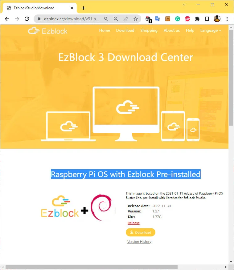 - Download the Raspberry Pi OS with EzBlock firmware preinstalled from here.