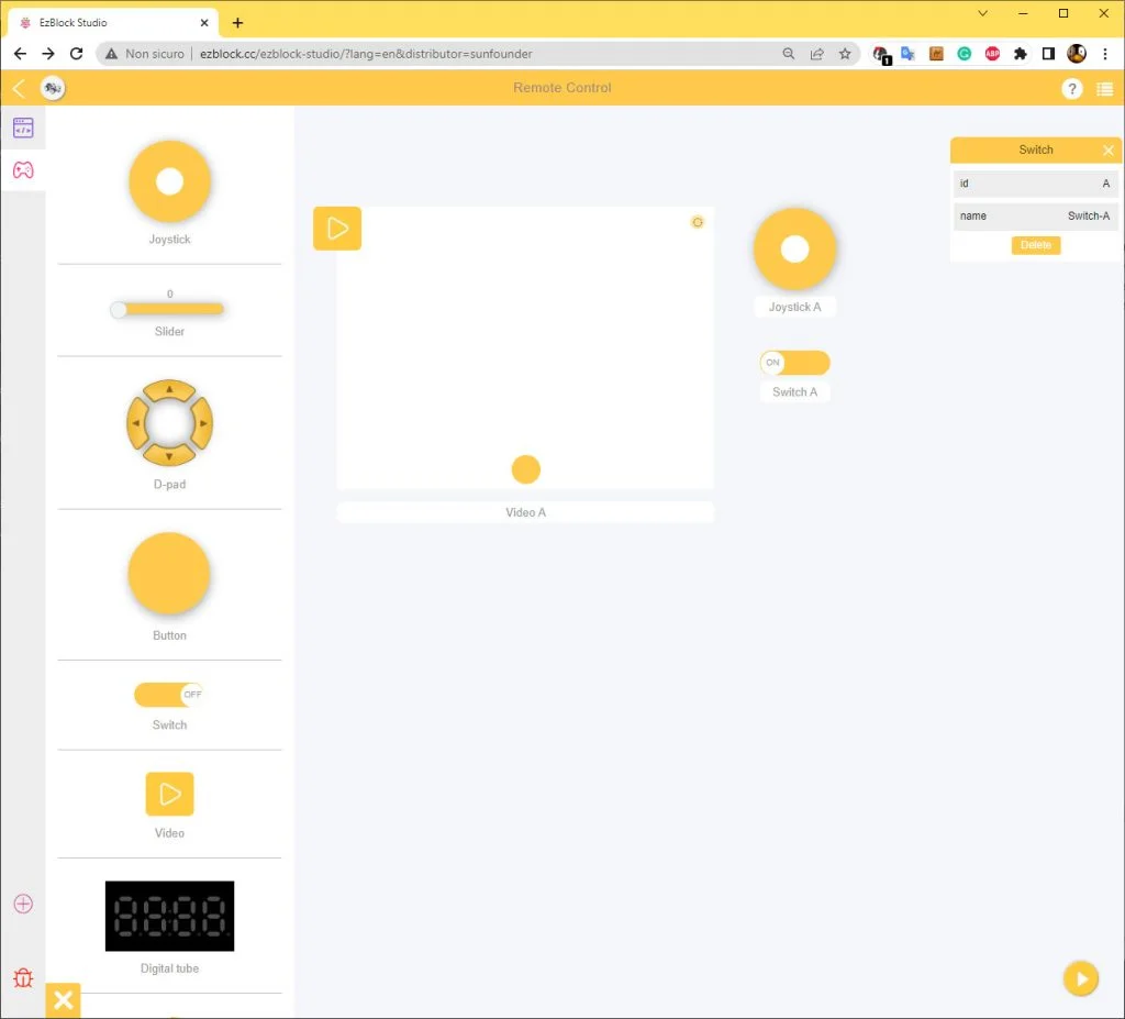 The EzBlock programming IDE includes an instrument section that provides users with various tools to control and interact with their PiCar-X. The instrument section can be found on the right-hand side of the IDE and includes several components, such as the joystick, slider, video, and more.