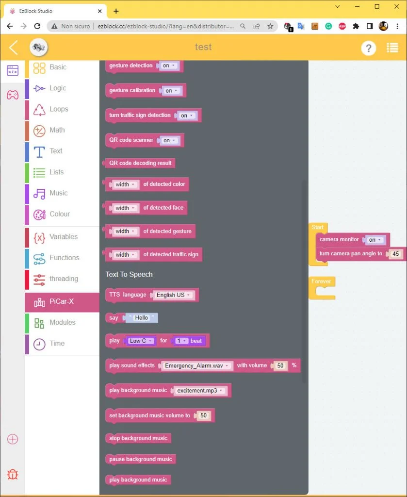 EzBlock is based on the Blockly visual programming language. Blockly is an open-source project developed by Google that allows users to create programs using blocks that represent code. These blocks can be dragged and dropped onto a canvas, and they can be connected to form a program. EzBlock takes the Blockly concept and adds PiCar-X specific blocks to create a user-friendly programming environment for the PiCar-X.