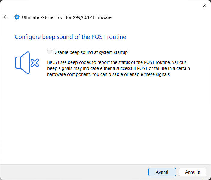 • Suono: Il suono “Beep” di avvio è mantenuto abilitato.